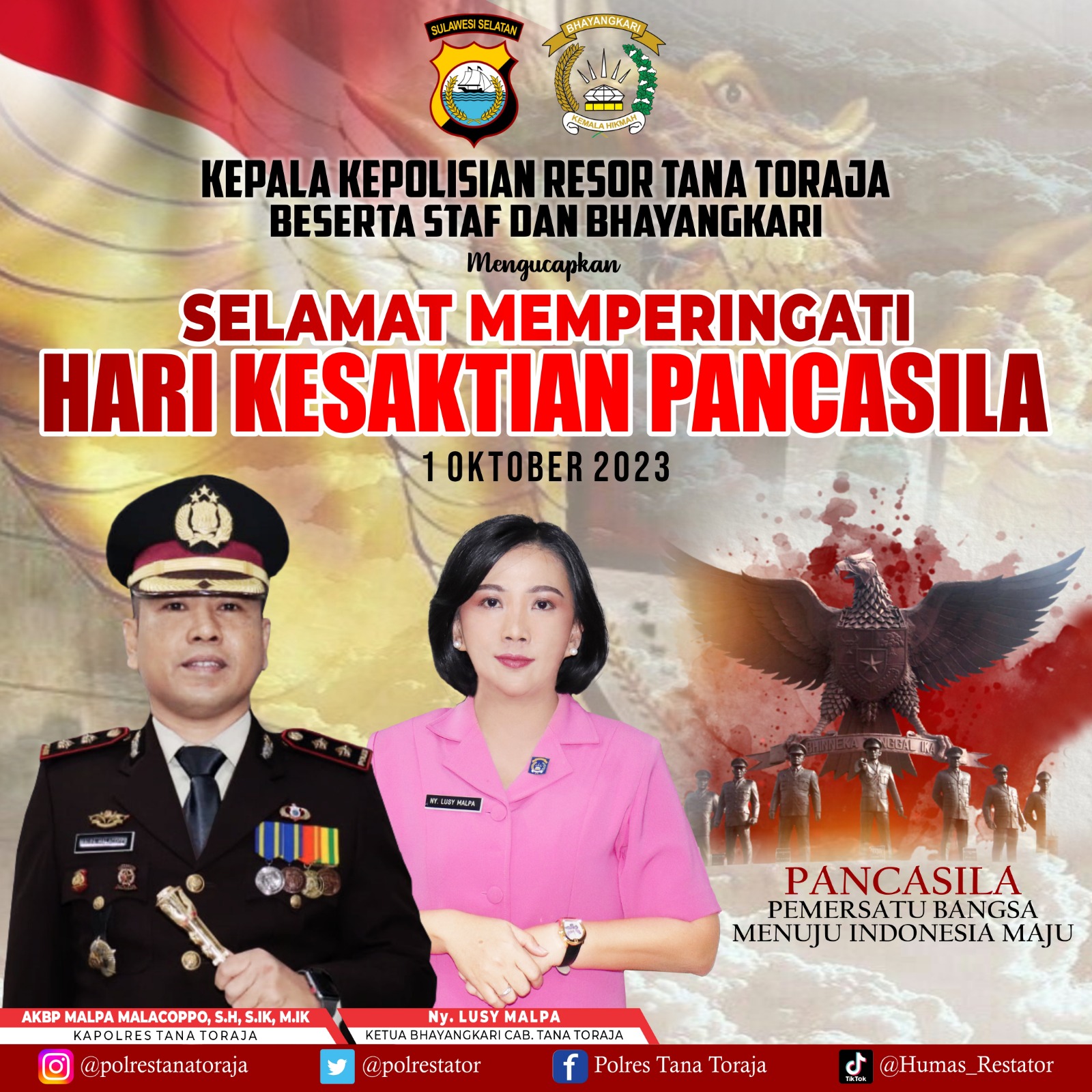 Upacara hari kesaktian pancasila dipimpin lansung oleh Kapolres Tana Toraja AKBP Malpa Malacoppo, S.H., S.I.K., M.I.K., selaku inspektur upacara, adapun tema yang diusung tahun ini yaitu “Pancasila Pemersatu Bangsa Menuju Indonesia Maju”.