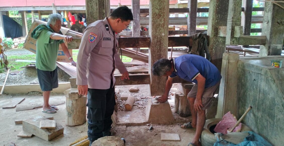 Mengetahui hal tersebut, sigap personil Bhabinkamtibmas Polsek Saluputti mendatangi lokasi retakan dan rawan tanah longsor tersebut.