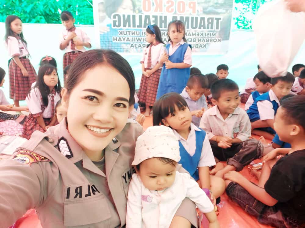 Begini Upaya Polwan Polres Tana Toraja Hilangkan Rasa Trauma Anak – Anak Korban Bencana Alam