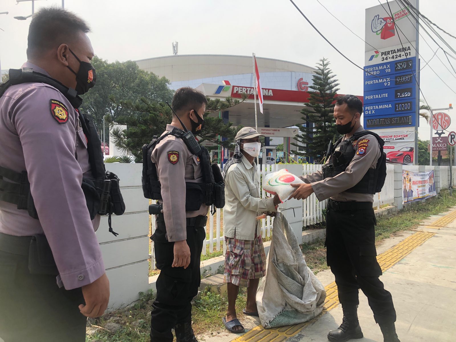 hari ini kami dari Satuan Samapta Polres Cilegon melaksanakan pendistribusian sembako dan bagi-bagi masker kepada masyarakat yang terdampak Covid 19,di daerah hukum Polres Cilegon diantaranya di jalan protokol Kota Cilegon,diwilayah Citangkil dan diwilayah Jombang Kota Cilegon.