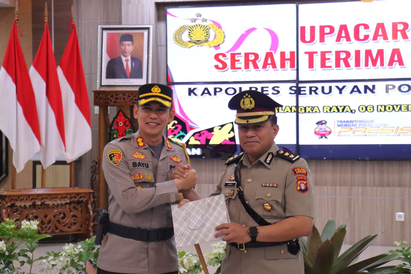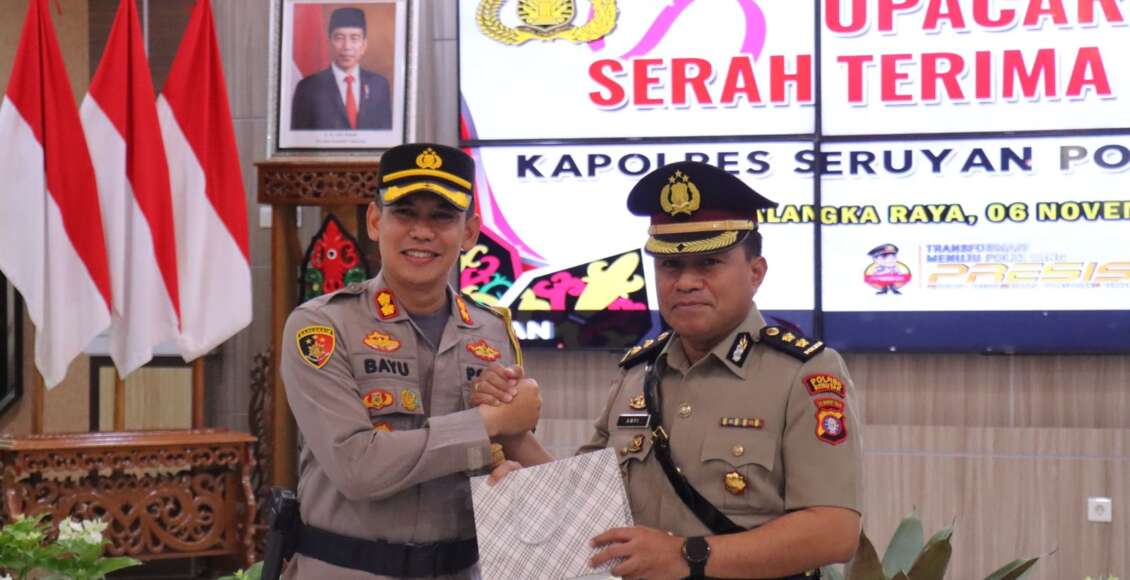 KALTENG,ikagawanews.id – Setelah mengikuti upacar sertijab Kapolres Seruyan, Kapolres Kotawaringin Barat AKBP Bayu Wicaksono,SH.,SIK.,M.Si mewakili Kapolres Jajaran menyerahkan Cinderamata kepada AKBP Ampi Mesias Von Bulow,SIK.,M.H.,Senin 6 November 2023 pukul 15.00 Wib.