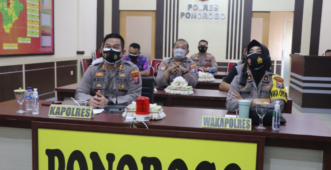 PONOROGO,IKAGAWANEWS.ID – Sebagai wujud kepedulian kepada anggotanya, Kapolres Ponorogo AKBP Mochamad Nur Azis, S.H., S.I.K., M.Si beserta PJU menjenguk anggota yang sakit secara daring melalui Zoom bertempat di Gedung Pesat Gatra Polres Ponorogo, Jum’at (06/08/2021) pagi.