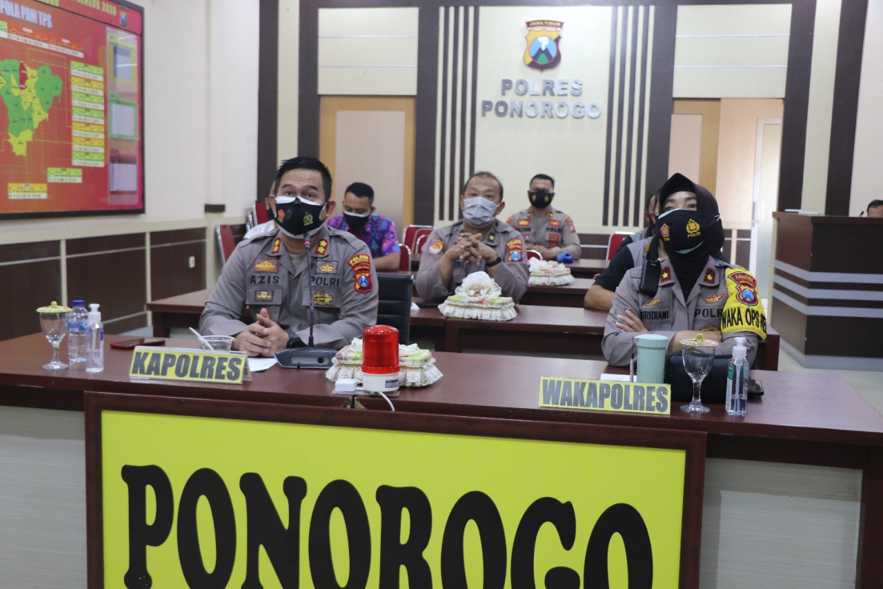 Kapolres Ponorogo melalui aplikasi virtual Zoom memberikan semangat kepada seluruh anggota Polres Ponorogo agar cepat sembuh dan dapat kembali beraktivitas seperti biasa.