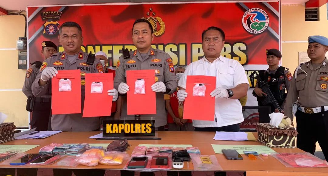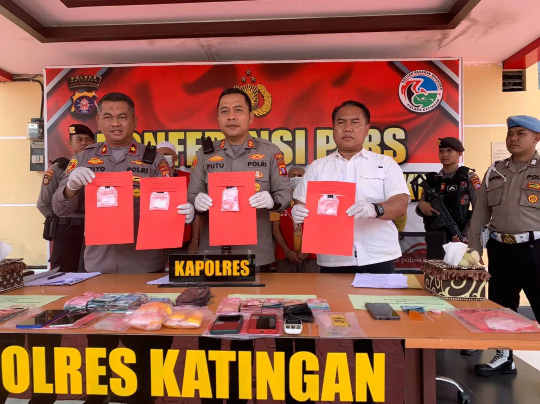Kapolres Katingan AKBP I Gede Putu W., S.H., S.I.K., M.H. didampingi Wakapolres Kompol Triyo Sugiyono, S.H. dan Kasat Resnarkoba AKP Suherman, S.H. mengatakan, dari pengungkapan tiga kasus ini pihaknya menetapkan empat tersangka pengedar.