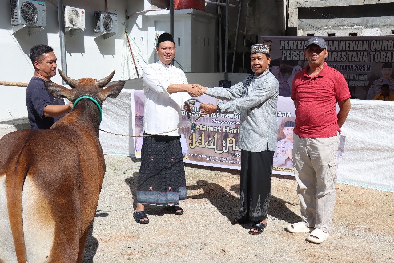 Seluruh rangkaian kegiatan berlangsung aman dan penuh suasana kekeluargaan. Kapolres berharap, nilai-nilai keikhlasan dan kebersamaan dalam momen Idul Adha dapat terus tumbuh di lingkungan Polres Tana Toraja, sejalan dengan semangat Polri Presisi yang mengedepankan pelayanan dan kepedulian kepada masyarakat.(Red/Hum)