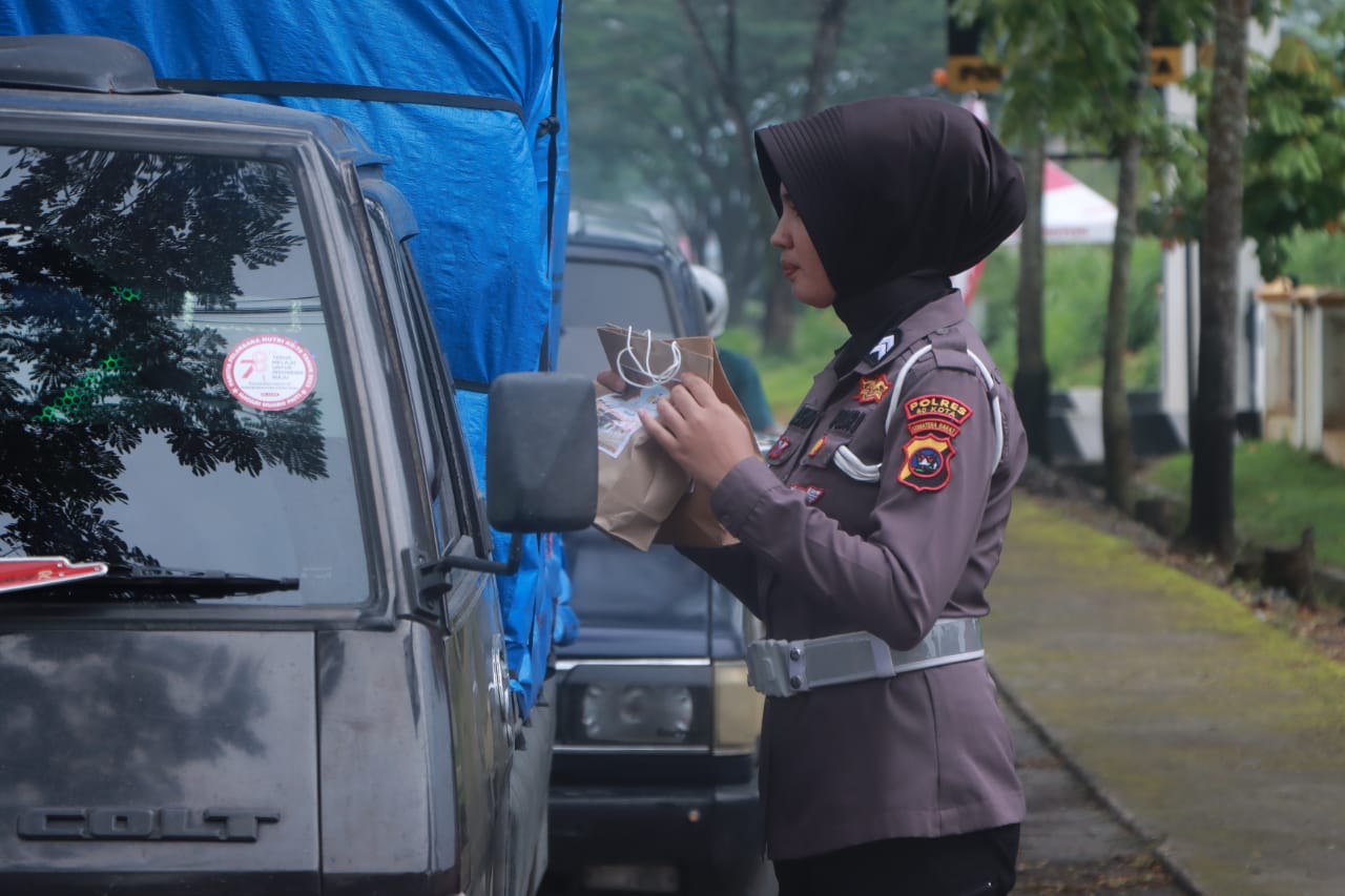 Para personel Polres 50 Kota turut serta aktif dalam kegiatan ini, dengan penuh semangat membagikan takjil kepada pengguna jalan yang melintas di depan Mapolres 50 Kota.