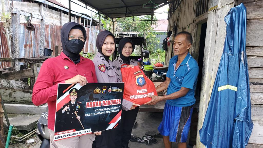 Berbagi Sesama, Polwan Polres Kotawaringin Barat Salurkan Sembako Kepada Masyarakat