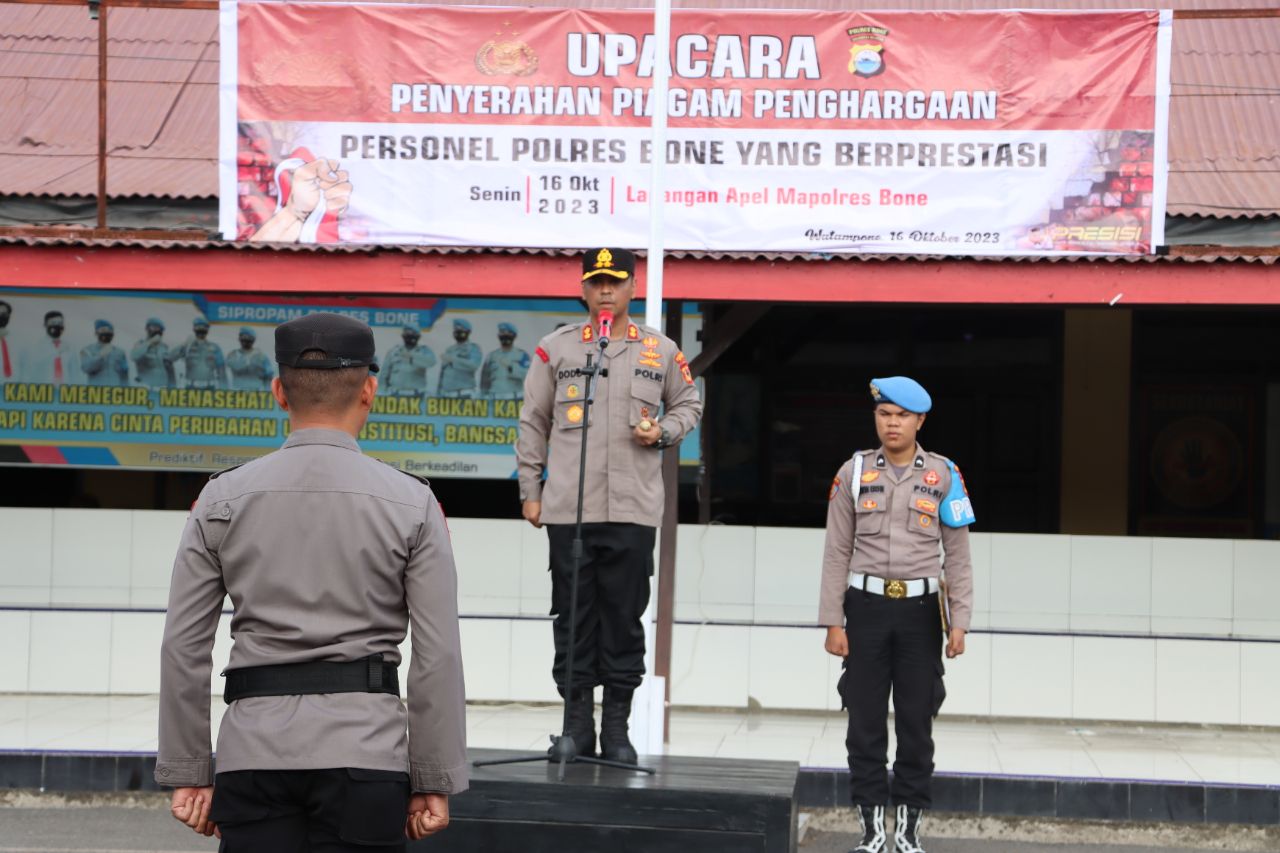 Upacara penyerahan penghargaan ini menjadi bukti nyata dari komitmen Polres Bone dalam memberikan apresiasi kepada personelnya yang berdedikasi tinggi dalam menjalankan tugas dan memberikan kontribusi positif untuk menjaga keamanan dan ketertiban masyarakat. Semoga penghargaan ini menjadi dorongan bagi seluruh personel Polres Bone untuk terus mengabdi dengan integritas dan semangat penuh dalam menjaga keamanan dan ketertiban di wilayah Bone.(Red/Hum)