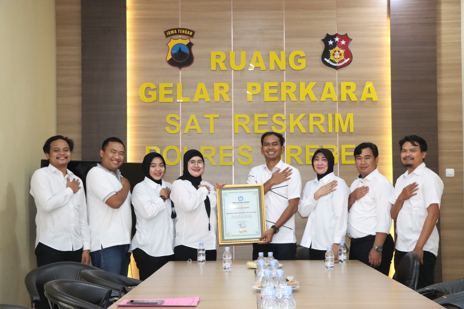Pemberian penghargaan disampaikan langsung oleh Ketua Nasional Tim Reaksi Cepat Perlindungan Perempuan dan Anak Indonesia Jeny Claudya Lumowa kepada kepada Kasat Reskrim Polres Brebes AKP Angga Surya Saputra bersama Kanit PPA Satreskrim Polres Brebes Aiptu Ruth Yossi Natallia bertempat di ruang Reskrim Polres Brebes, Rabu (10/1/2024).