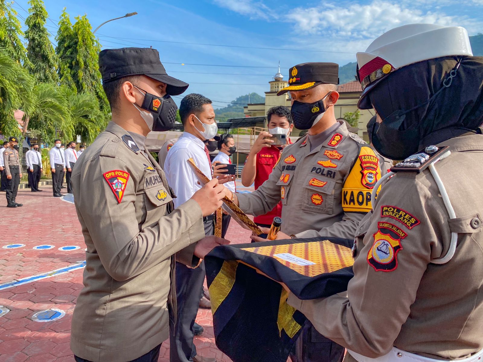 Penyerahan ini dipimpin langsung oleh AKBP Dr. Andi Sinjaya, SH,S.IK,MH selaku Kapolres Enrekang, yang juga dihadiri oleh pejabat utama Polres Enrekang, anggota Polres Enrekang dan personel Polres Enrekang yang menerima Penghargaan.