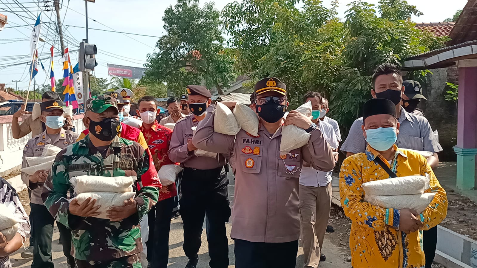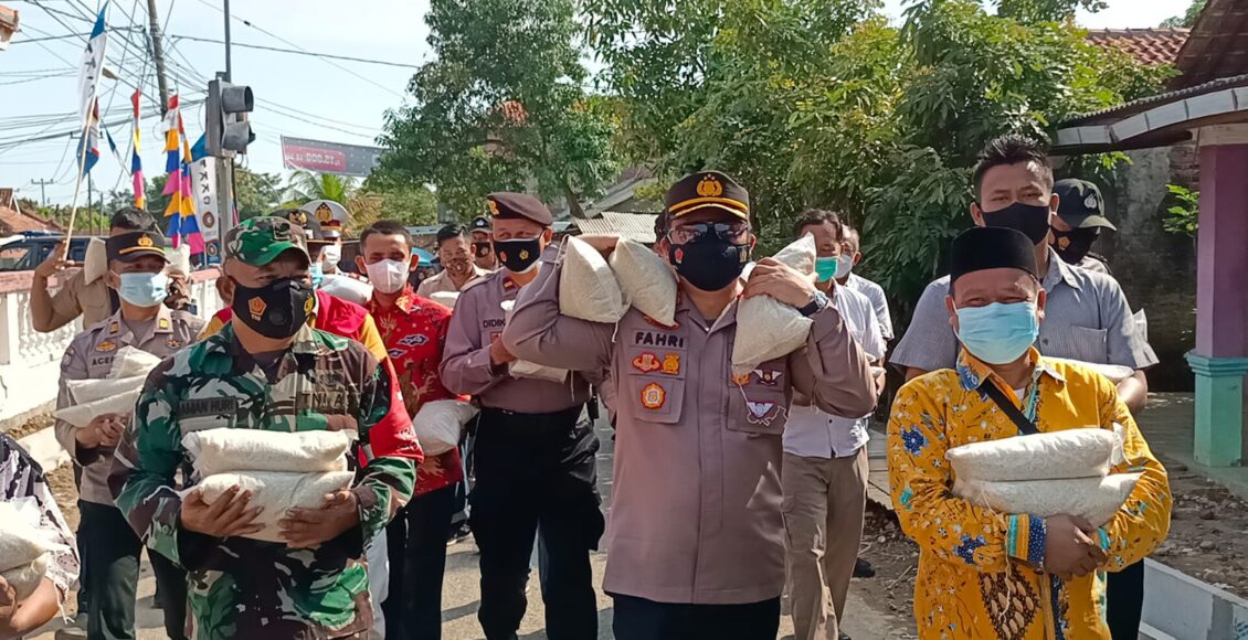 Berjalan kaki, Kapolres Cirebon Kota Blusukan Bagikan Beras Kepada Warga Ditengah Pandemo Covid-19