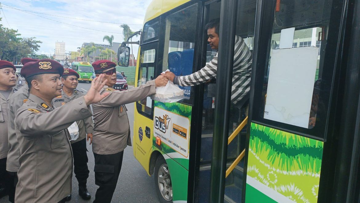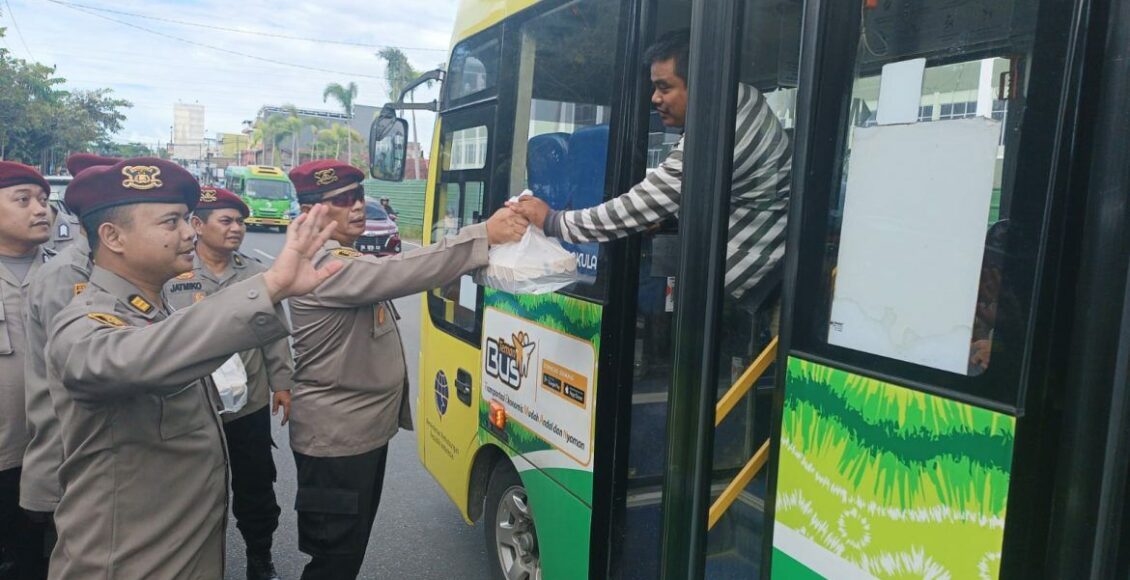 KALSEL,ikagawanews.id – Direktorat Reserse Kriminal Khusus (Dit Reskrimsus) Polda Kalimantan Selatan (Kalsel) menggelar kegiatan sosial dengan membagikan takjil gratis kepada masyarakat yang melintas di Jalan Terminal Km. 6 Kota Banjarmasin. Kegiatan ini bertujuan untuk menyemarakkan bulan suci Ramadhan serta mempererat hubungan antara kepolisian dan masyarakat.