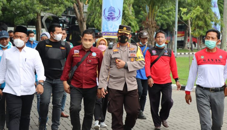 GRESIK,ikagawanews.id – Pengamanan aksi unjuk rasa SEKBER DPC SP/SB Kab.Gresik yang diikuti kurang lebih 1.200 orang diKantor Pemkab Gresik Jl. Dr. Wahidin SHD No.245 Kembangan Kec. Kebomas Kab. Gresik.Kamis ( 25-11-2021)