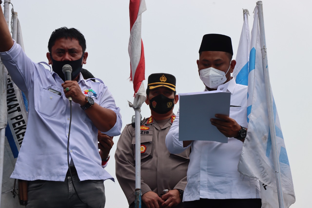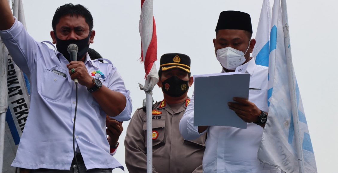 Bupati Gresik menyampaikan terimakasih aksi unjuk rasa berjalan damai dan tertib,pertemuan pada hari ini dalam rangka memperhatikan tuntutan dari pekerja terkait pengajuan Revisi Usulan UMK Kab. Gresik Tahun 2022 oleh Bupati Gresik. yang mana dalam usulan Rekomendasi tersebut terdapat usulan dari Dewan pengupahan Unsur Pemerintah, Akademisi, dan APINDO dan Unsur Serikat Pekerja. Dalam hal ini rekan rekan pekerja keberatan dalam rekomendasi Bupati Gresik pada alinea terakhir yang merekomendasikan hanya 1 angka, sehingga teman teman pekerja menuntut merevisi usulan rekomendasi tersebut.