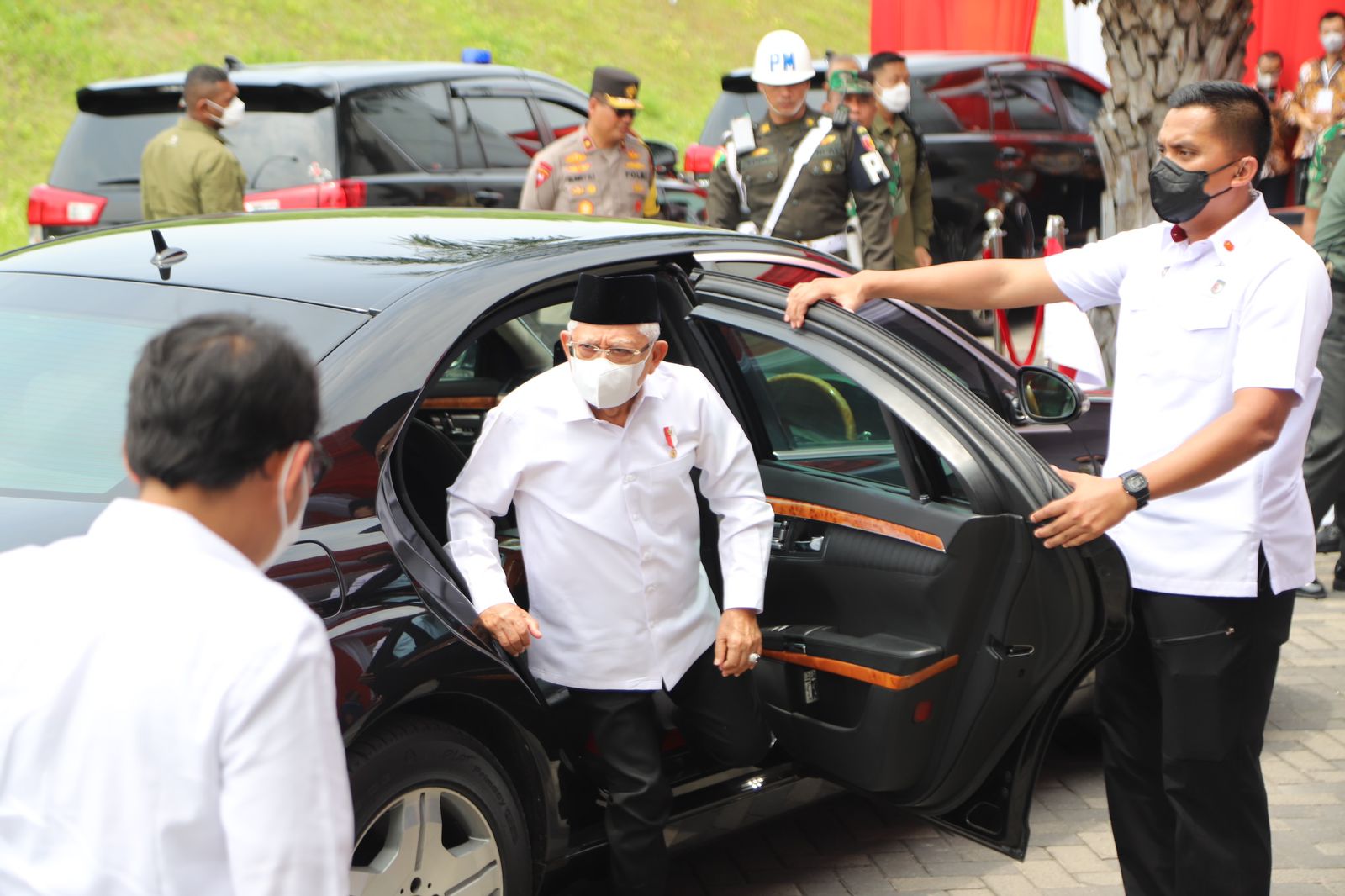 Selanjutnya rombongan melaksanakan kegiatan Kunjungan lapangan ke area pembangunan Smelter dan Pelabuhan JIIPE Wakil Presiden Rl beserta rombongan tiba di Kantor Marketing JllPE dan dilanjutkan menyaksikan penandatanganan kerja sama payung retail BBM antara PT. Aneka Petroindo Raya dengan PT. Jatim Sarana Utama, setelah penandatanganan Wakil Presiden Prof. Dr. (H.C.) K.H. Ma’ruf Amin beserta rombongan meninggalkan kantor Marketing JllPE menuju Hotel Sheraton Surabaya.