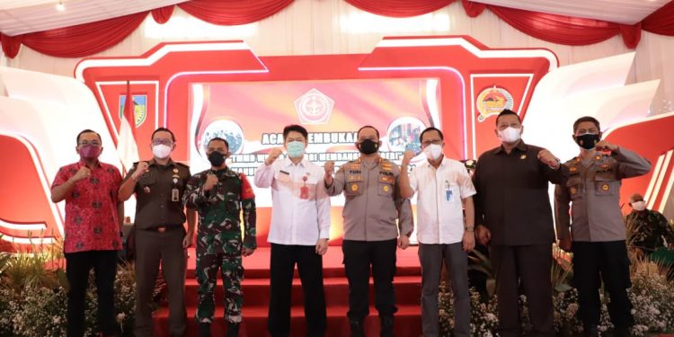 Bersama Forkopimda Kabupaten Kediri, Kapolres Kediri Kota Hadiri Kegiatan TMMD di Desa Kalipang Kecamatan Grogol