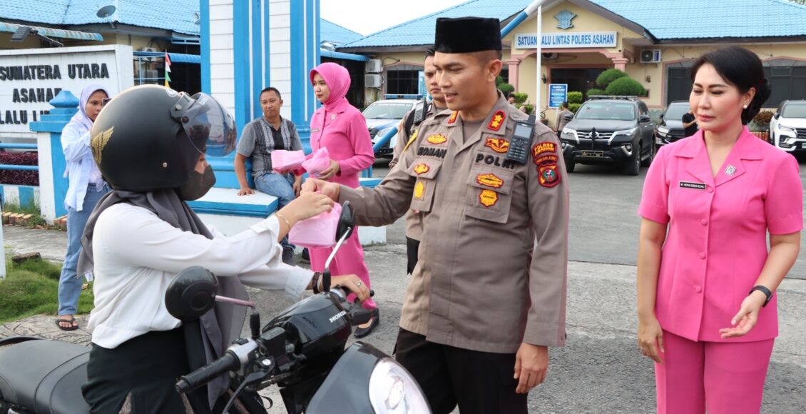 Bersama Ketua Bhayangkari, Kapolres Bagikan Takjil di Depan Satlantas Polres Asahan
