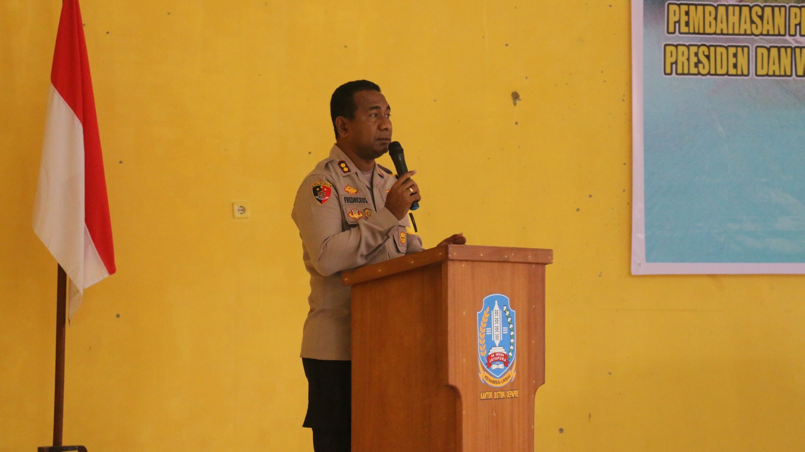 “jadi saya mohon pengertian mohon kerjasama untuk kita harus bisa membangun, bisa memberikan ruang, pemahaman sehingga masyarakat itu bisa siap untuk melaksanakan pemilihan umum nanti,” tutup AKBP Fredrickus.