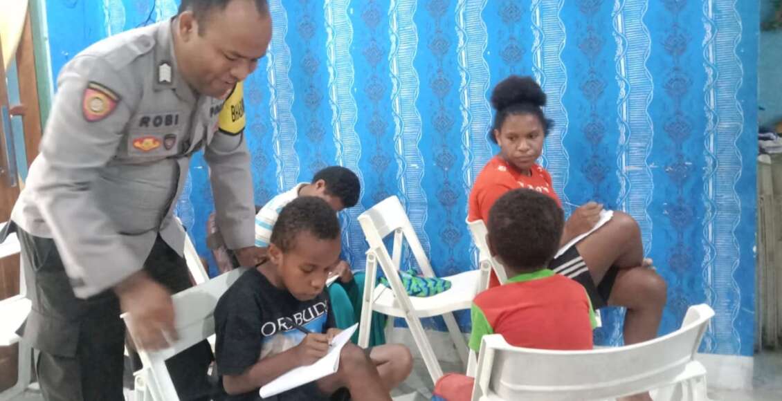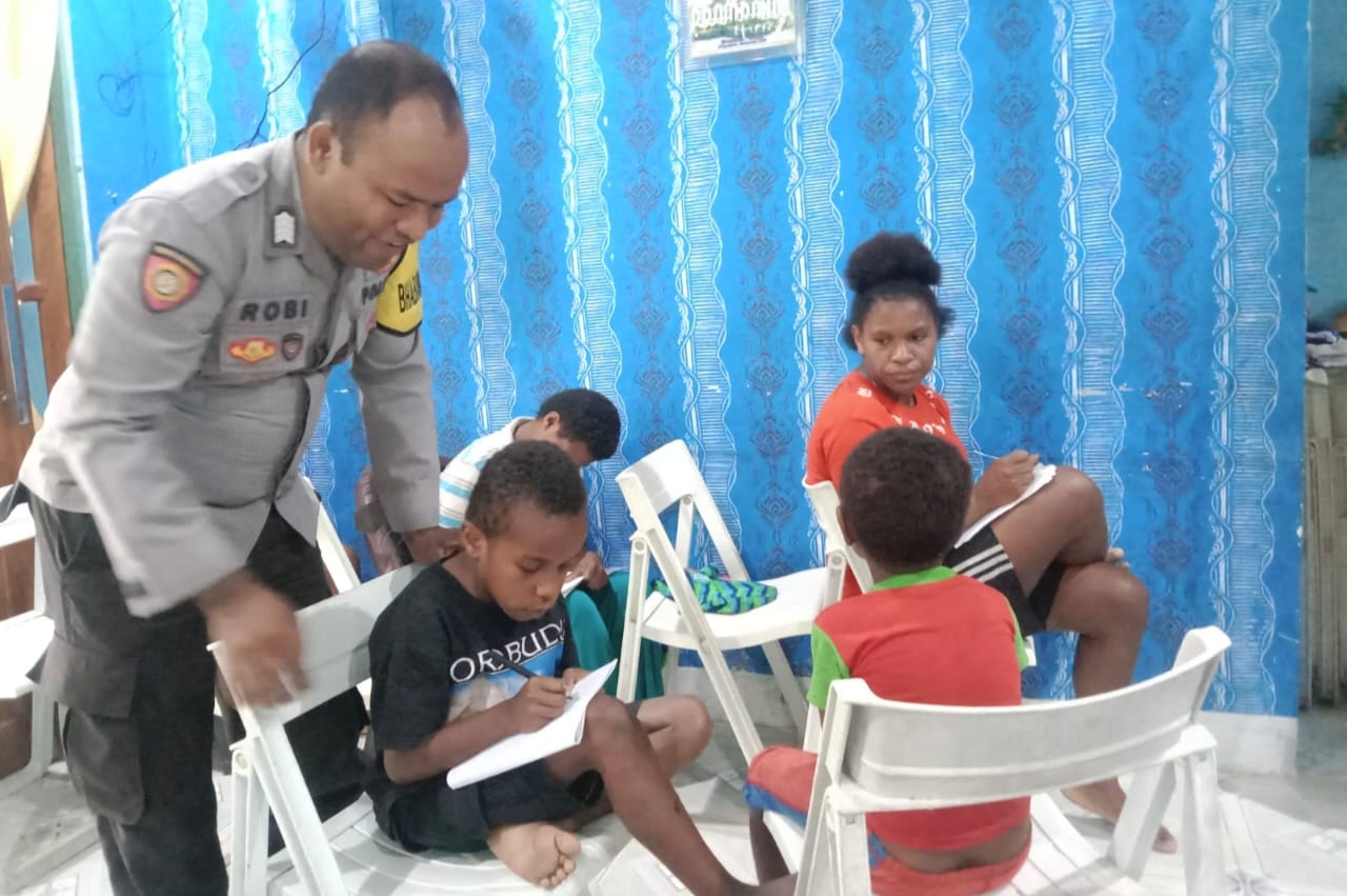Bersinergi Dengan Guru SD Bhabinkamtibmas Ajarkan Baca Tulis di Sentani