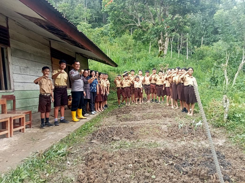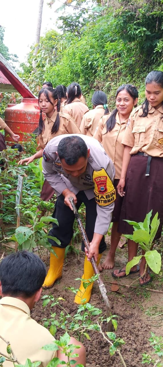 Bhabinkamtibmas Polres Tator Sambangi Sekolah Galakkan Penanaman Pangan Bergizi Di Pekarangan