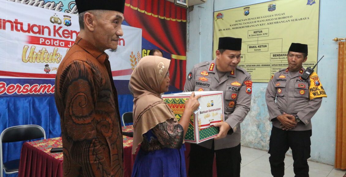Kali ini Bidang Hubungan Masyarakat ( Bidhumas ) bersama Bidang Hukum (Bidkum) Polda Jatim membagikan 100 paket sembako bagi masyarakat di wilayah Kecamatan Krembangan Surabaya.