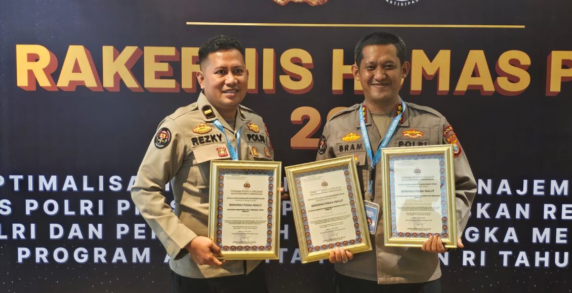 Ketiga penghargaan tersebut diterima langsung oleh Kepala Bidang Humas Polda Maluku Utara Kombes Pol. Wahyu Istanto Bram W., S.I.K., M.I.K., dan diserahkan oleh Kepala Divisi Humas Polri Irjen Pol. Johnny Eddizon Isir, S.I.K., M.T.C.P.