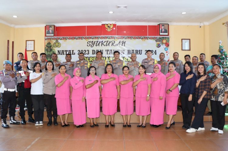 Pelaksanaan ibadah Syukuran Natal 2023 dan Tahun Baru 2024 berlangsung khidmat dan penuh makna, menciptakan suasana kebersamaan di antara anggota Polres Manggarai yang memiliki latar belakang keagamaan yang beragam. Para Kabag, Para Kasat, Para Perwira, Anggota Polres Manggarai, ASN Polres Manggarai, dan Bhayangkari Polres Manggarai ikut serta dalam syukuran ini.