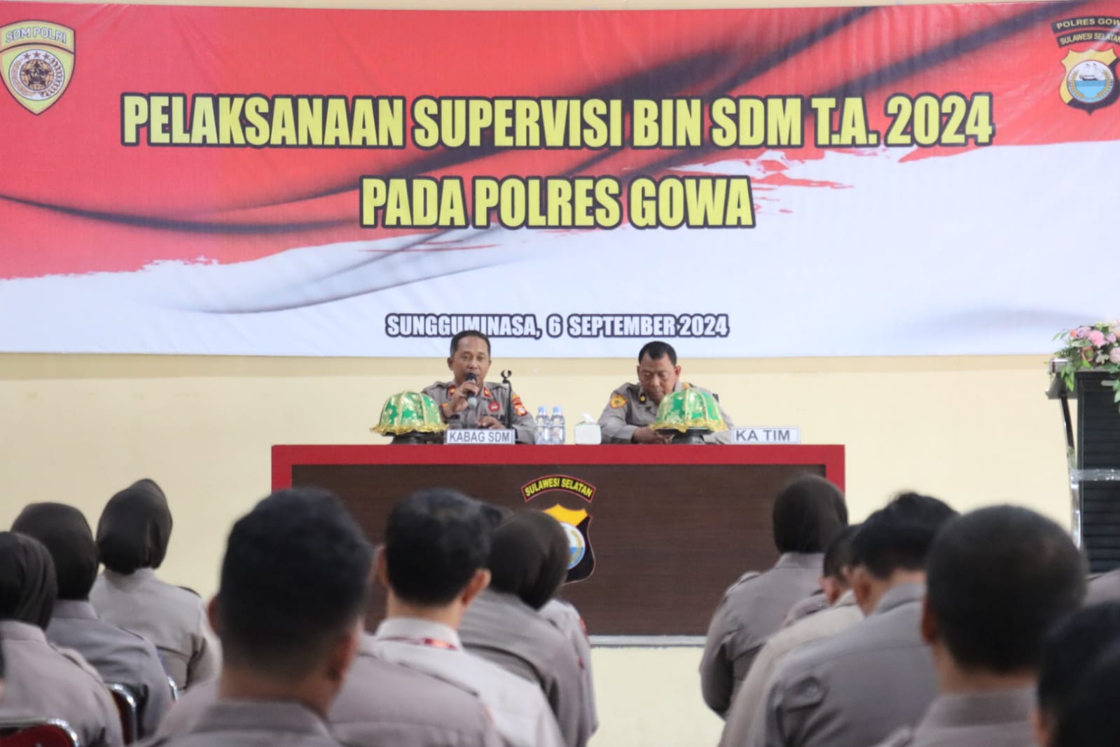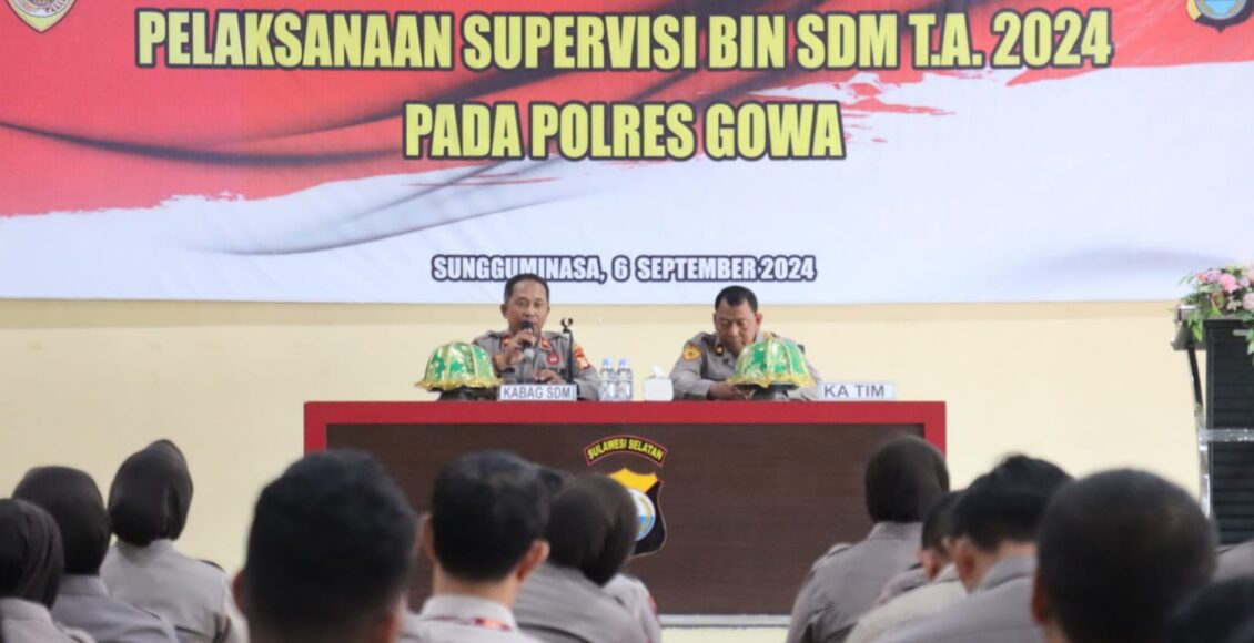 Kegiatan ini merupakan bagian dari upaya peningkatan kualitas dan kapasitas personel Polri di wilayah Sulawesi Selatan. Kegiatan supervisi yang berlangsung di Aula Rewako Wira Wicaksana Laghawa Polres Gowa ini dipimpin langsung oleh Kabagwatpers Biro SDM Polda Sulsel AKBP Eko Suroso, beserta tim supervisi dari Polda Sulsel di dampingi Kabag SDM Polres Gowa KOMPOL Sahyuddin S.Sos, M.H.