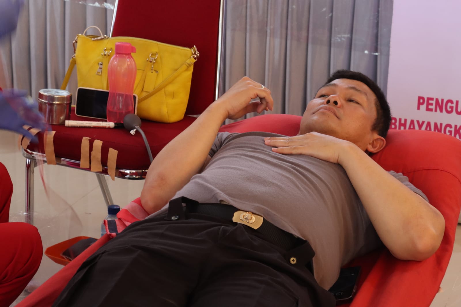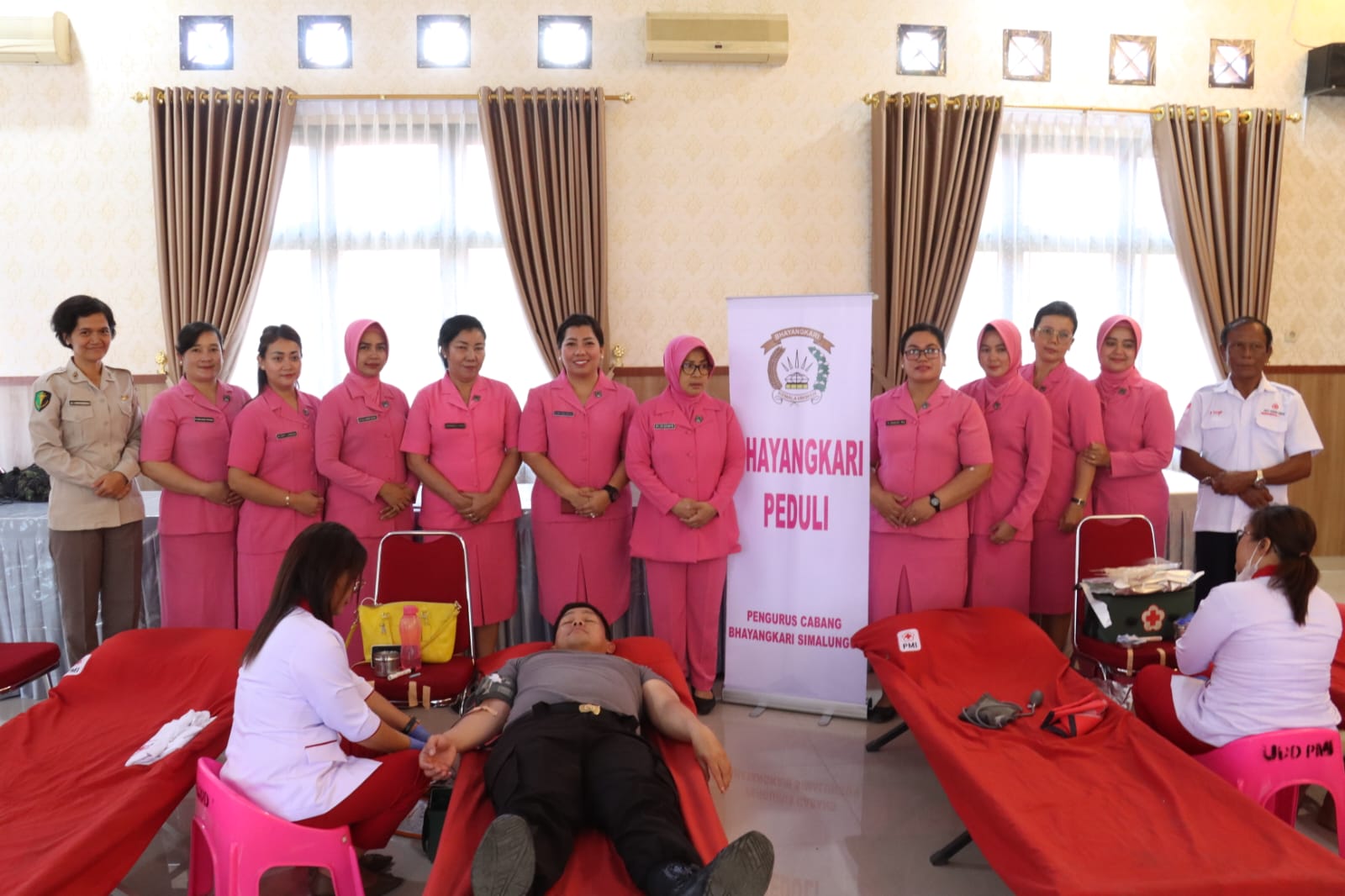 Bulan Bakti Polri Presisi Kapolres Bersama Personel Polres Simalungun Dan Bhayangkari Menggelar Kegiatan Donor Darah
