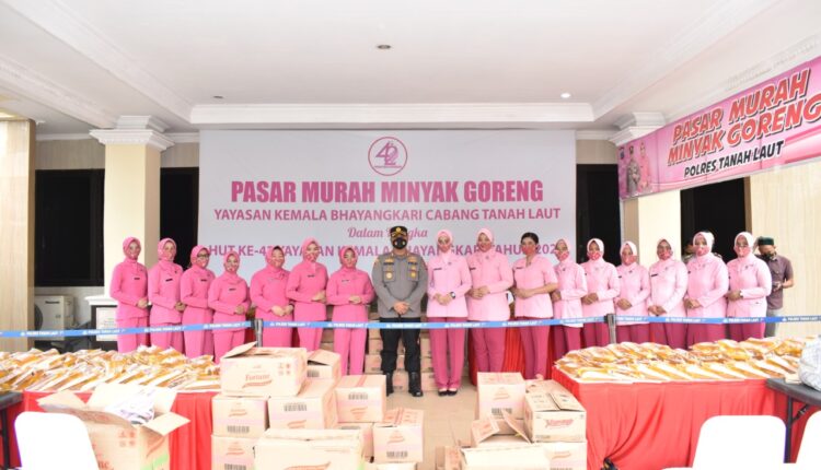 TANAH LAUT,ikagawanews.id – Menjelang Bulan Ramadhan 1443 H dan dalam rangka mengatasi kelangkaan minyak goreng, Polres Tanah Laut bekerja sama dengan Bhayangkari dan Yayasan Kemala Bhayangkari Cabang Tanah Laut menggelar pasar murah khusus minyak goreng untuk masyarakat Tanah Laut dan sekitarnya, bertempat di Halaman Mapolres Tanah Laut jalan Kemakmuran No.1, Pelaihari, Selasa (29/3).