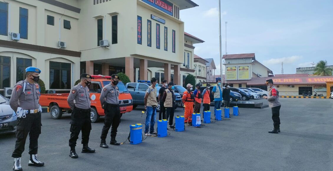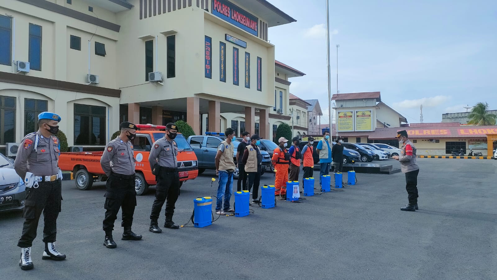 Cegah Lonjakan Covid-19, Polres Lhokseumawe Lakukan Penyemprotan Disinfektan di Ruang Pelayanan Publik