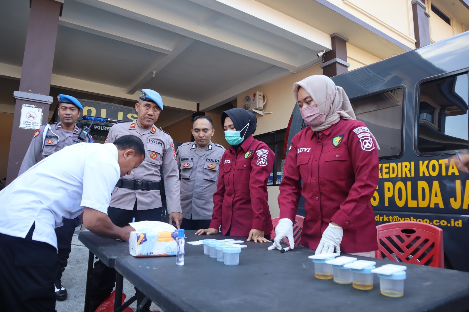 Tes urine yang dilakukan oleh tim medis Si Dokes Polres Kediri Kota dan di dampingi Propam Polres Kediri Kota, melibatkan puluhan anggota Polres Kediri Kota.