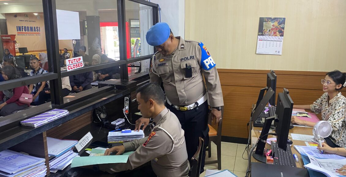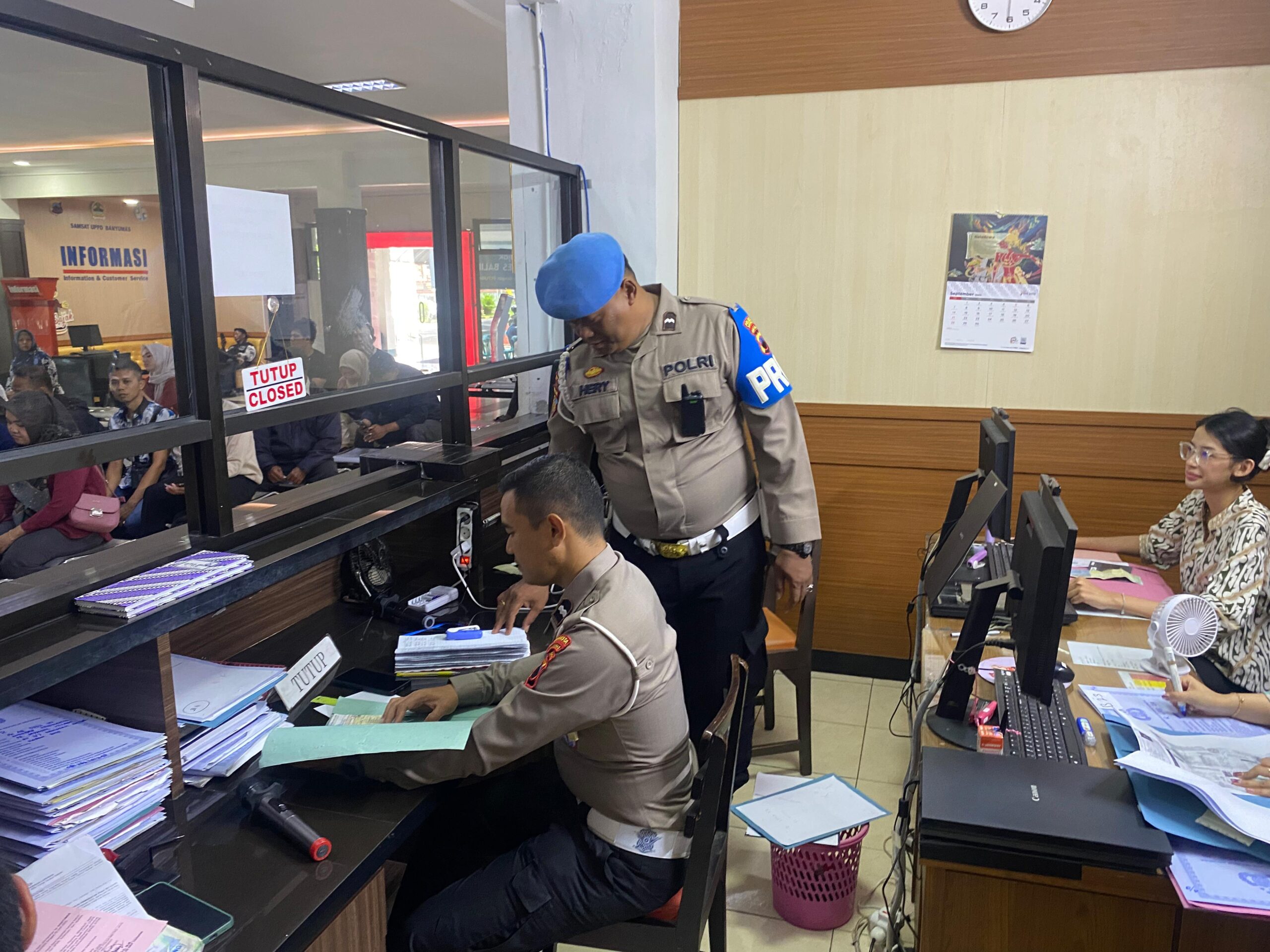 Dalam pengawasan tersebut, personel Propam melakukan pemantauan langsung terhadap alur pelayanan, mulai dari loket pendaftaran, proses pembayaran pajak kendaraan, hingga interaksi petugas dengan masyarakat.
