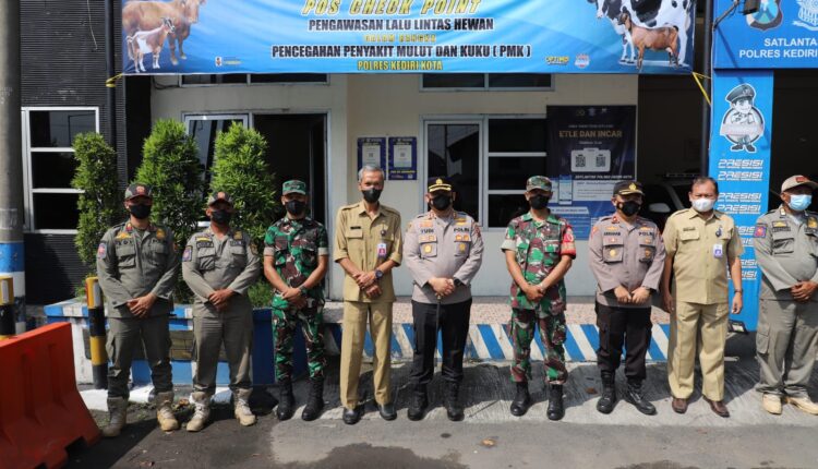 Cegah PMK Kapolres Kediri Kota bersama Pantau Pos Check Point Lalu Lintas Hewan Ternak
