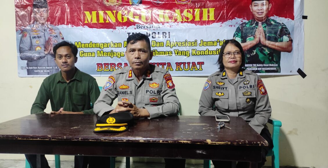 Pengantar Minggu Kasih disampaikan oleh Kasubdit Binpolmas Ditbinmas Polda Sulsel dengan menyampaikan beberapa strategi dan program pimpinan Polri saat ini dengan Jumlah Peserta kurang lebih 20 orang.(Red/Hum)