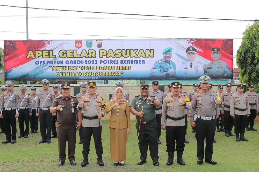 Operasi ditandai dengan pemasangan pita tanda operasi saat apel gelar di halaman Mapolres, oleh Wakil Bupati Kebumen Ristawati Purwaningsih kepada para perwakilan personel, Senin 10 Juli 2023.