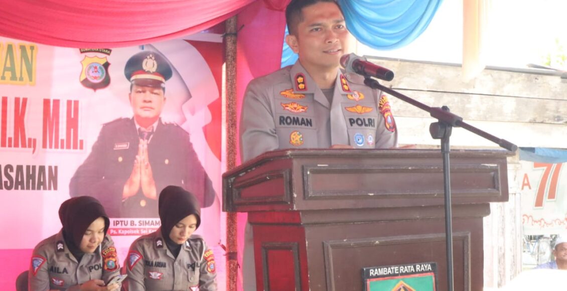 Kapolres Asahan AKBP Roman Smaradhana Elhaj. SH, SIK, MH dalam sambutannya mengatakan bahwa, kegiatan kunjungan kerja ini, selain untuk menjalin silaturahmi juga untuk mengecek situasi kamtibmas di wilayah Polsek Simpang Empat.