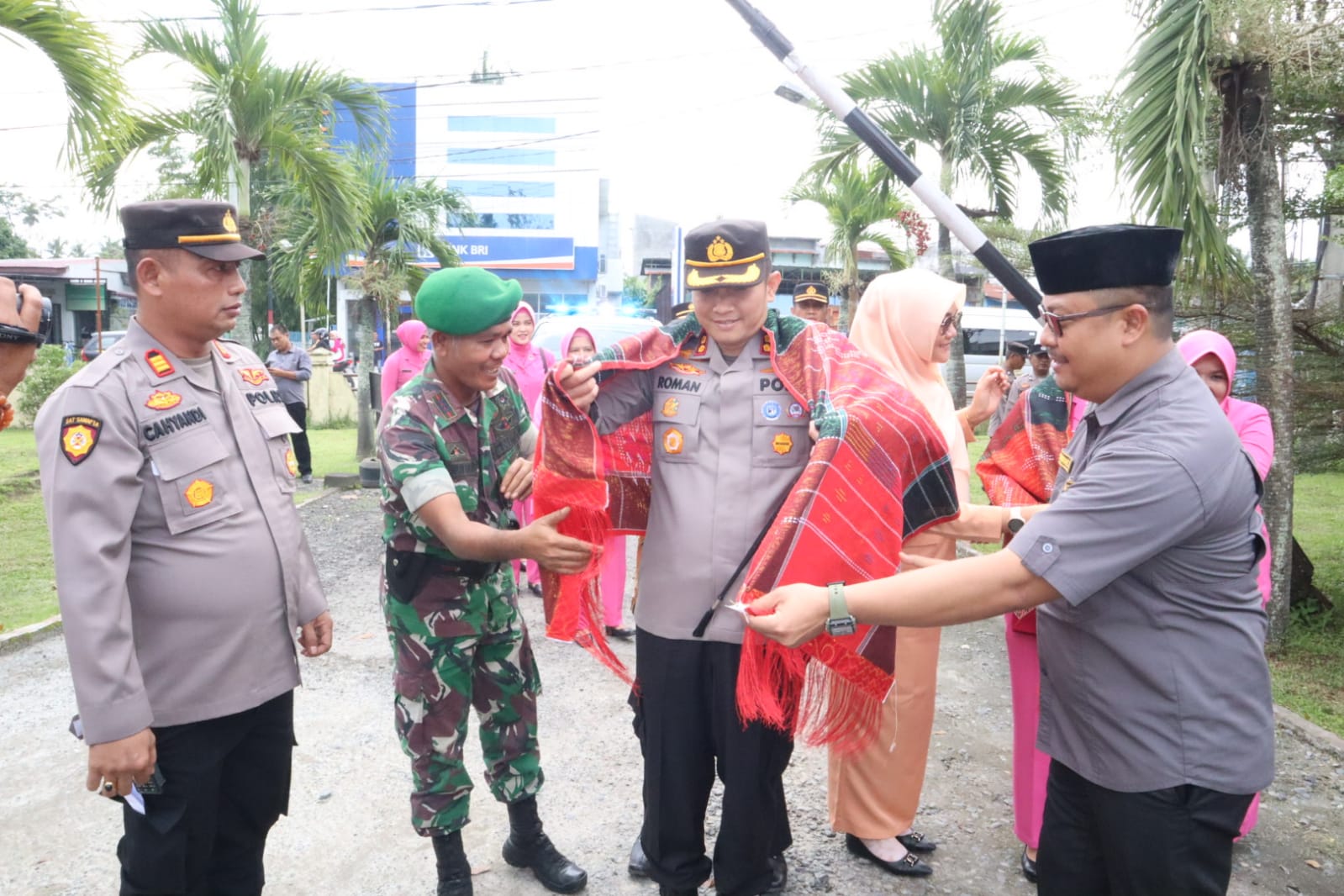 Kunjungan Kerja Kapolres Asahan bersama Ketua Bhayangkari di sambut oleh Kapolsek Simpang Empat AKP Cahyandi beserta Pengurus Bhayangkari Ranting, Tokoh Agama, tokoh Pemuda dan Personel Polsek Simpang Empat.