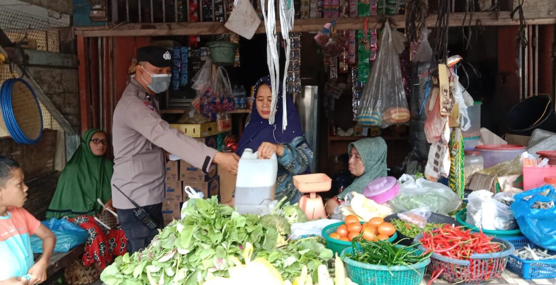 Lanjut Kasi Humas, personel mendatangi para pedagang melihat dan memantau langsung persediaan atau stok minyak goreng, baik yang kemasan maupun minyak goreng curah. Selain itu, personel juga mengecek stok bahan kebutuhan pokok lainnya.
