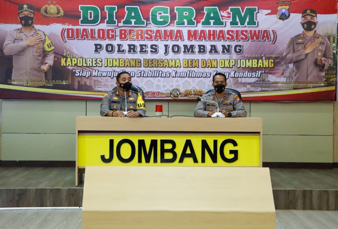 Jombang,ikagawanews.id – Sinergi dan komitmen menjaga stabilitas Kamtibmas terus digaungkan oleh Kapolres Jombang, AKBP Moh. Nurhidayat. Salah satu bentuknya dengan menggelar Dialog Bersama Mahasiswa atau Diagram.