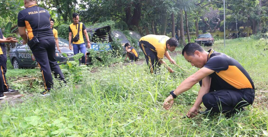 Selain personel Polres Kediri Kota, personel Polsek jajaran juga melaksanakan kerja bakti membersihkan lingkungan Mako Polsek masing-masing.