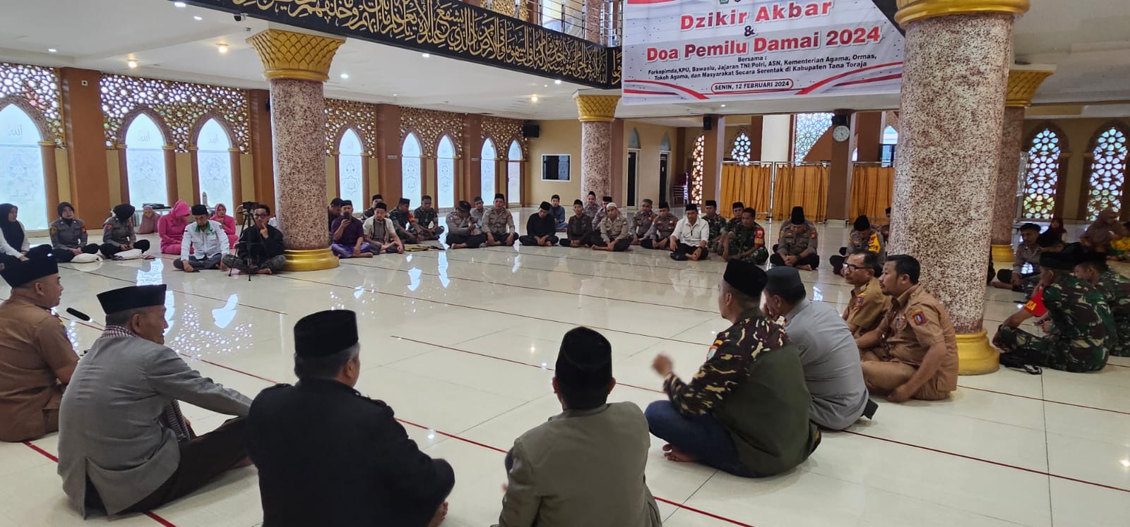 Sementara Bupati Tana Toraja Theofilus Allorerung, yang diwakili oleh Asisten Satu Muhammad Safar, mengungkapkan bahwa semoga dengan dilaksanakannya doa dan dzikir bersama ini, seluruh penyelenggara pemilu baik dari TNI – Polri, KPUD, Bawaslu dan seluruh elemen masyarakat dapat mensukseskan jalannya pemilu tahun 2024 yang aman dan damai