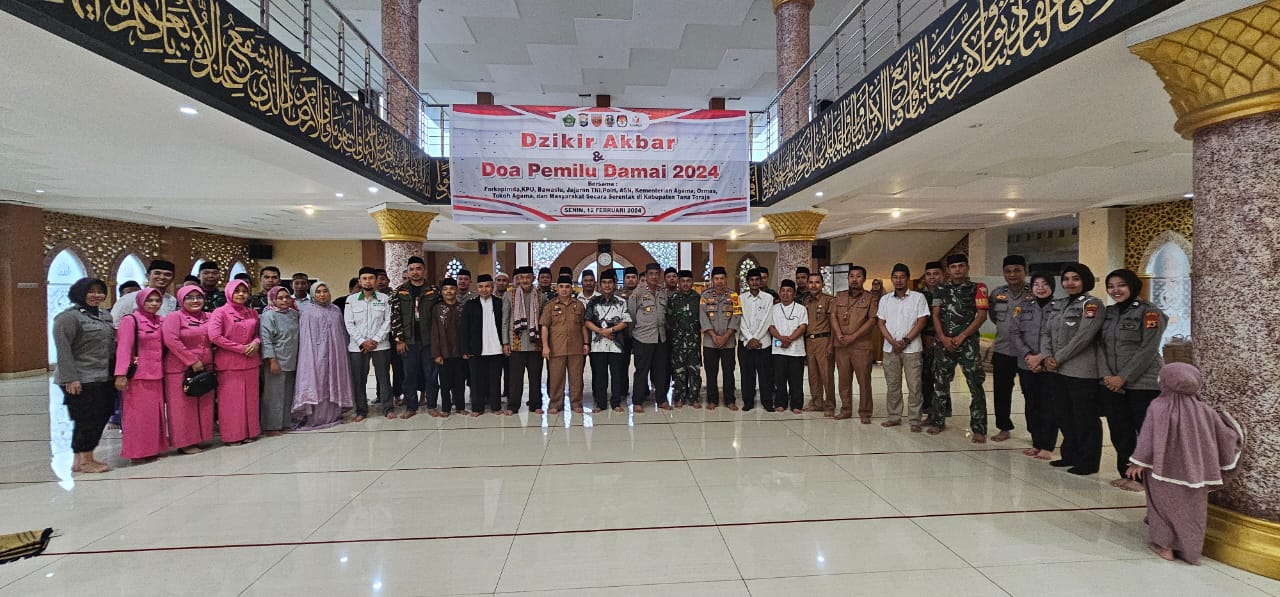 TANA TORAJA,ikagawanews.id – H -2 Pemilu tahun 2024 Polres Tana Toraja bersama Kodim 1414/Tator, Pemda, Depag, KPUD, Bawaslu dan PCNU Kabupaten Tana Toraja menggelar doa dan dzikir bersama dengan harapan pemilu tahun 2024 dapat berjalan aman dan damai, Senin (12/2/24)
