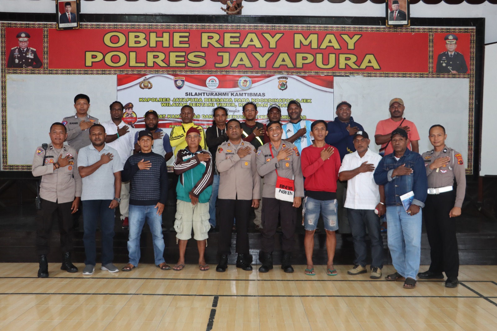 Kegiatan dihadiri Kapolres Jayapura AKBP Fredrickus W. A. Maclarimboen S.IK, MH, Kasat Binmas IPTU I Made Ambo Arjana S.H, M.H, anggota Sat Binmas, Satuan lalu lintas dan 16 koordinator pangkalan ojek di wilayah Sentani.