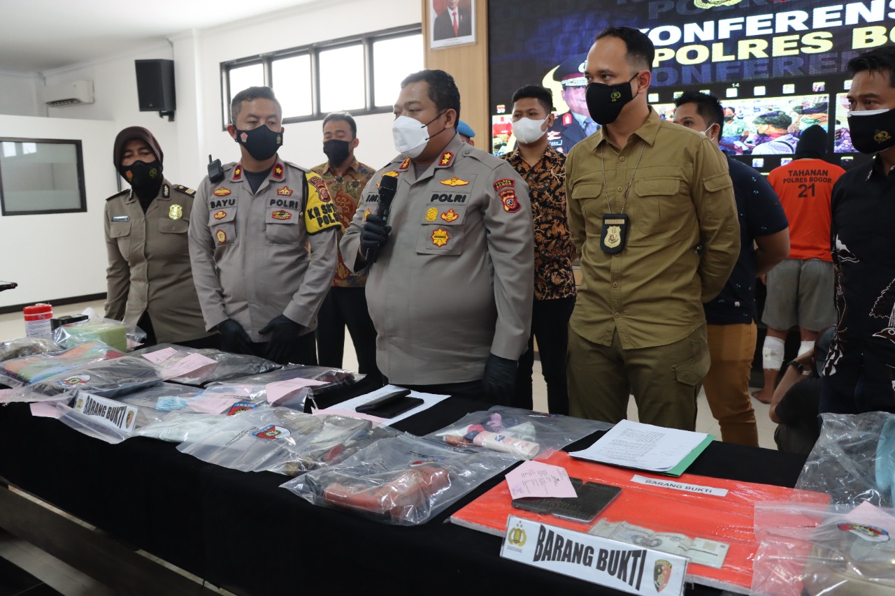 Dari pengungkapan ini kita amankan barang bukti dari tangan tersangka berupa bungkusan plastik warna hitam yang di dalamnya berisi jenazah dan pakaian, 1 unit sepeda motor Honda CS1, 2 buah HP, 1 buah bantal, 1 buah tas, peralatan kosmetik, sepasang sandal wanita, 1 buah masker, 3 buah kondom, 1 buah parfum, 1 buah karpet, 3 buah kantong kresek, 1 buah lakban bekas, 1 buah potongan busa, 1 buah tali putih, 1 buah gayung, 1 buah ember, 1 buah mesin bor, 1 buah skop adukan, 1 buah tang, 1 buah pahat, 1 buah palu, 1 buah gunting, potongan keramik, dan 3 buah botol Aqua.