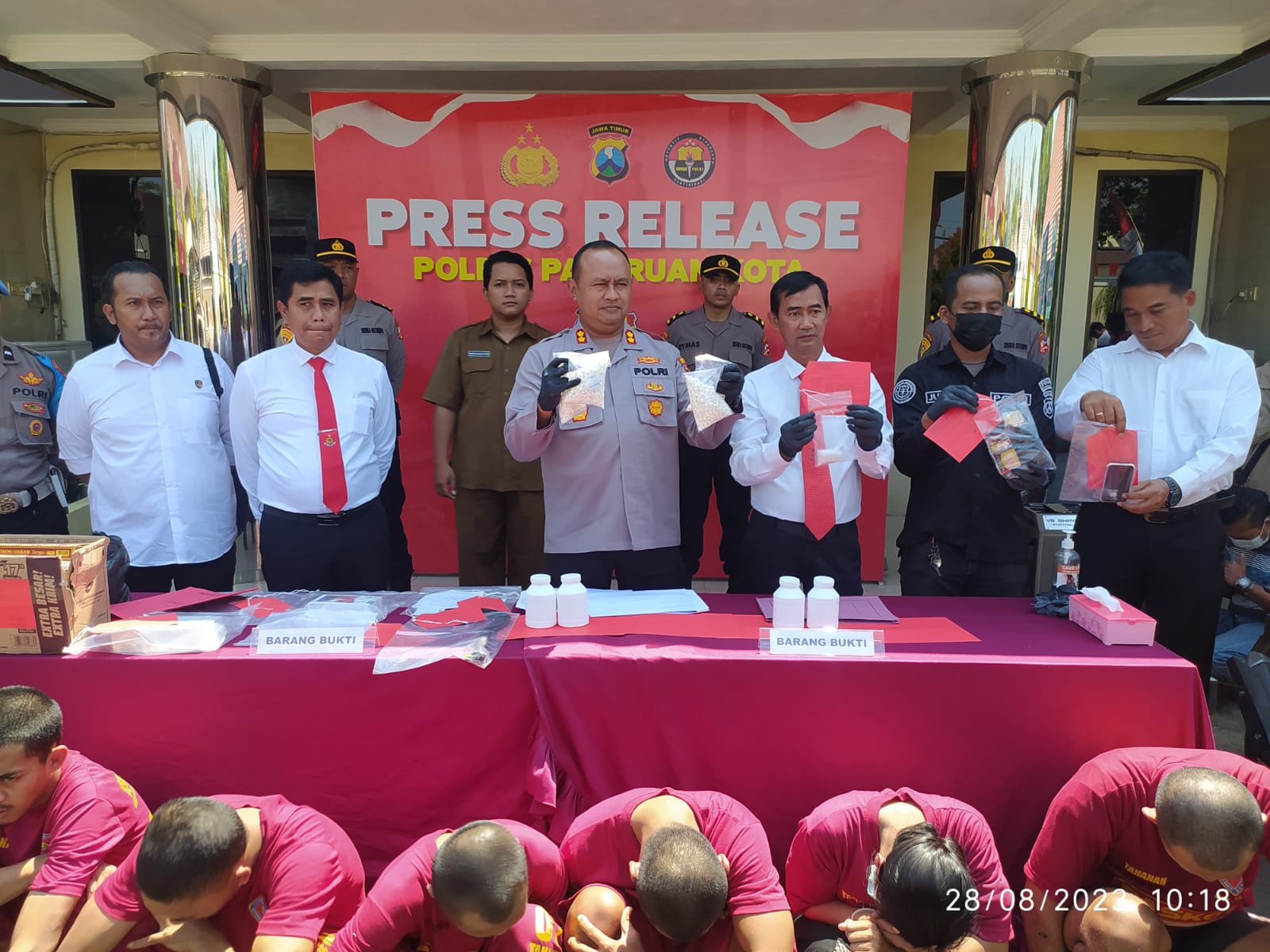 Acara yang digelar depan Lobby Mako Polres Pasuruan Kota sekira pada pukul 10.00 WIB, meperlihatkan keberhasilan Satres Narkoba Polres Pasuruan Kota yang dipimpin oleh Kasat Resnarkoba Polres Pasuruan Kota, AKP Evan Andias.