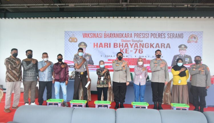 Kegiatan ini merupakan rangkaian untuk memperingati Hari Bhayangkara namun sekaligus mengejar target capaian vaksinasi sesuai program pemerintah,” kata Kapolres Serang AKBP Yudha Satria.