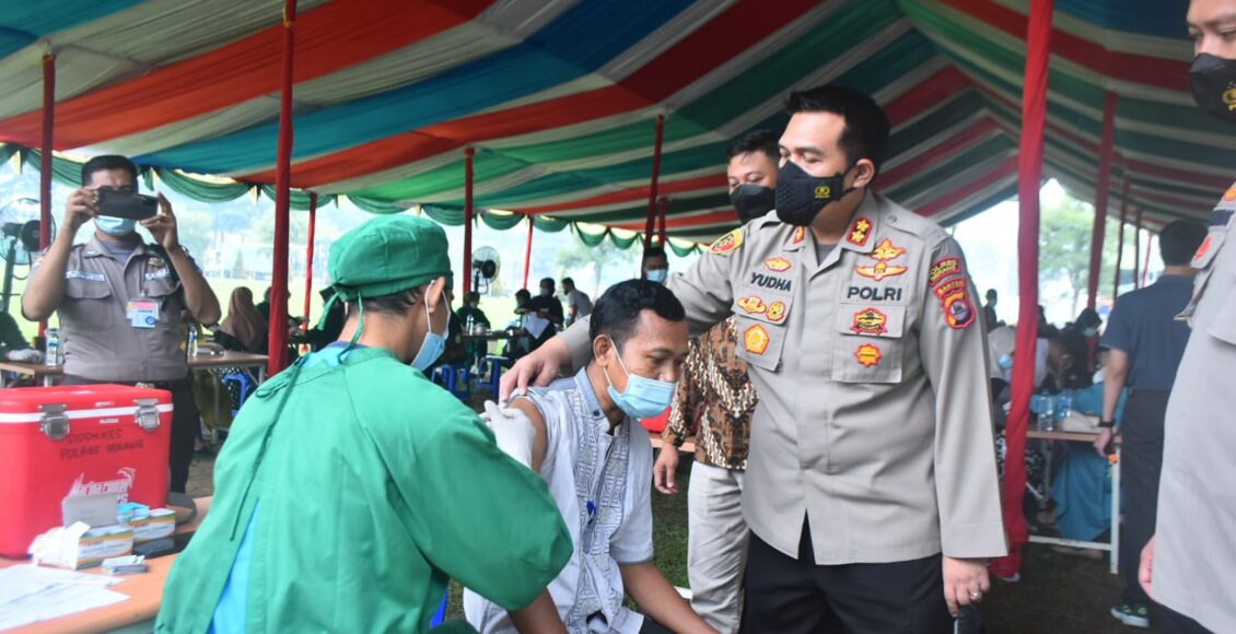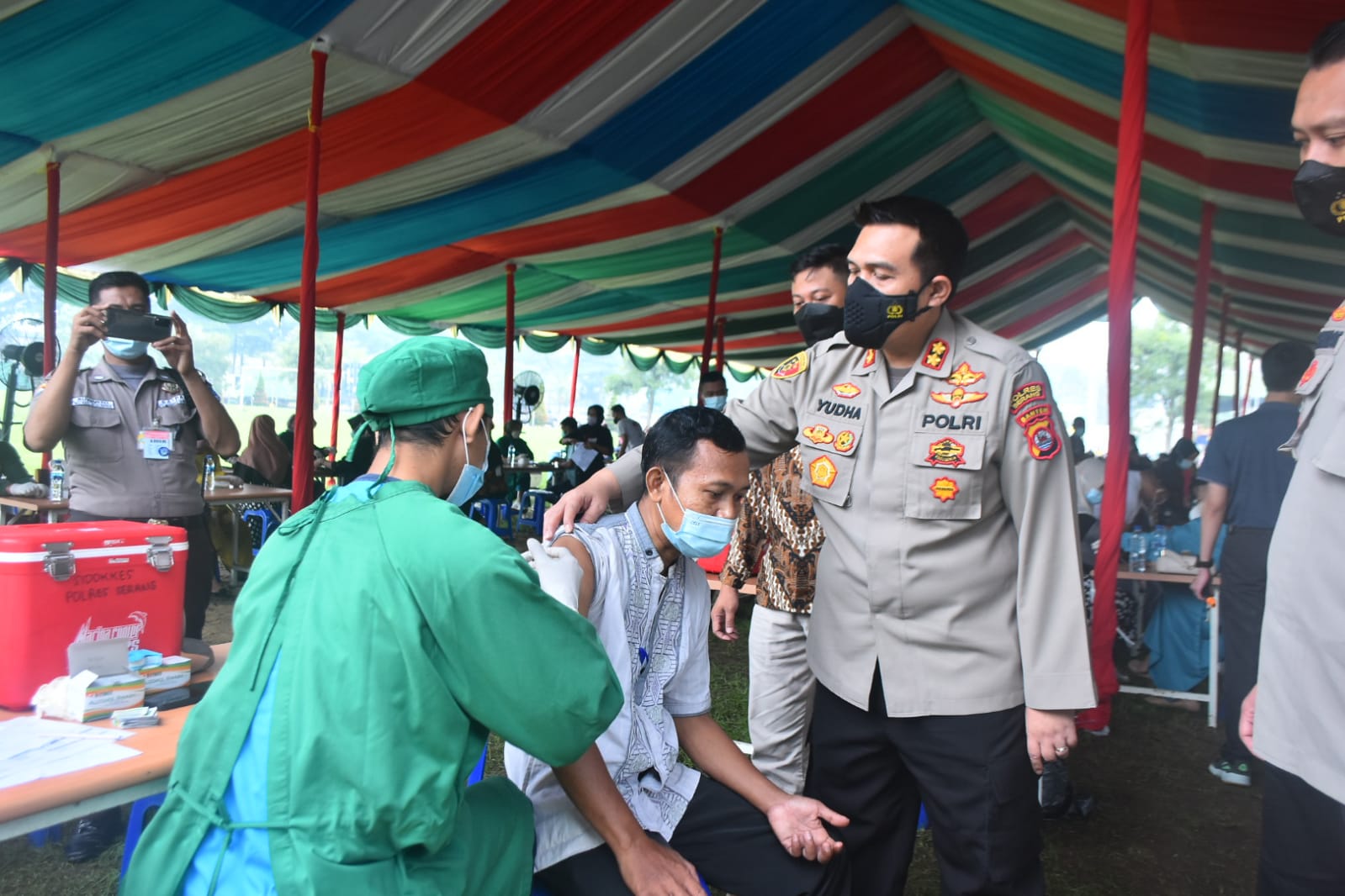 Kegiatan ini merupakan rangkaian untuk memperingati Hari Bhayangkara namun sekaligus mengejar target capaian vaksinasi sesuai program pemerintah,” kata Kapolres Serang AKBP Yudha Satria.