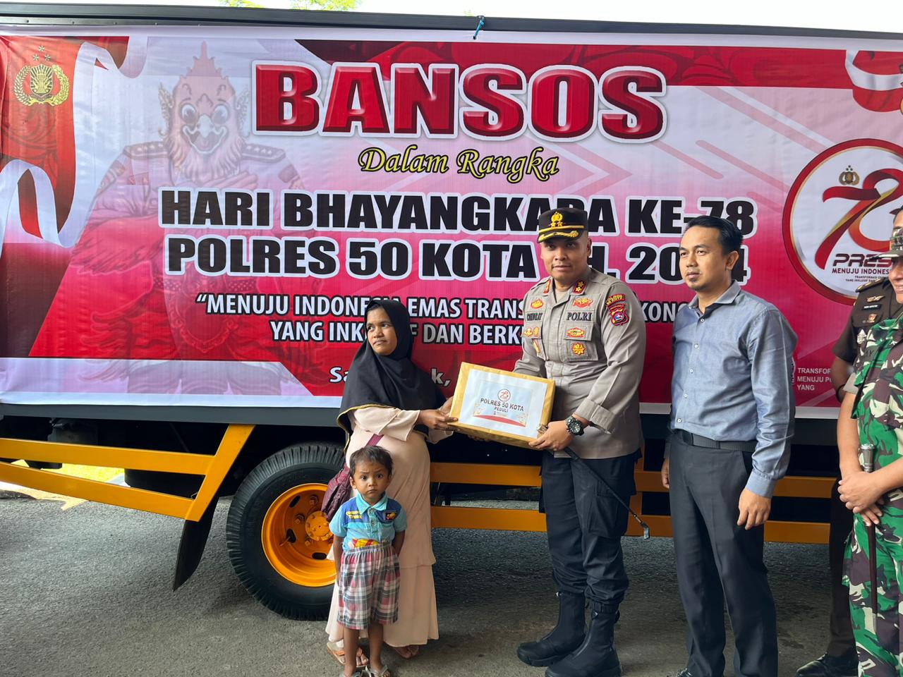 Dalam Rangka Hut Bhayangkara ke-78 Polres 50 Kota Bagikan 350 Paket Sembako