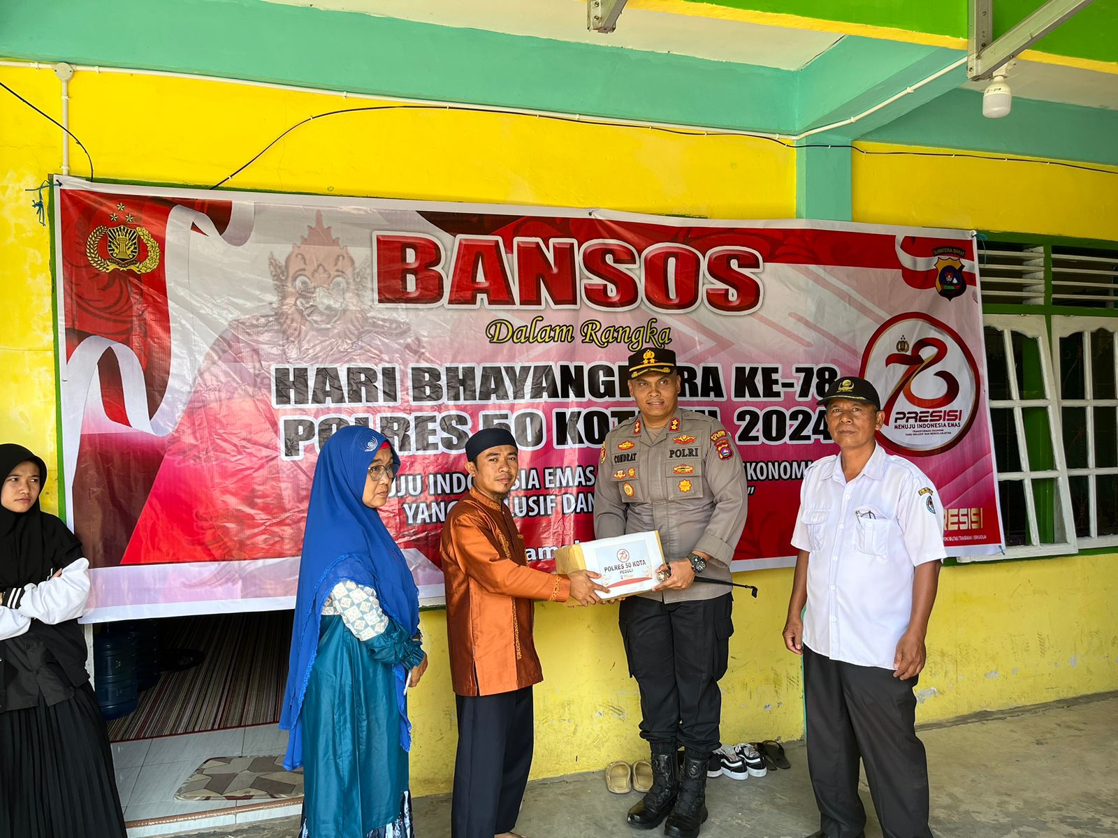 Pembagian bantuan sosial ini merupakan bagian dari peringatan Hari Bhayangkara ke-78 yang mengusung tema “Polri Presisi Mendukung Percepatan Transformasi Ekonomi yang Inklusif dan Berkelanjutan menuju Indonesia Emas.